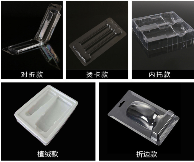 也叫塑料内托,选用吸朔加工工艺将塑胶片材做成特殊凹形的塑胶,将商品放置凹形内,具有维护和清理商品的功效。